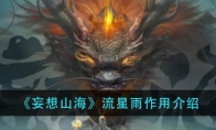 在妄想山海游戏当中,也有流星雨这一自然现象,那么单纯只是为了好看吗?其实流星雨在游戏还是有一定作用的,可以为我们带来特殊材料。接下来就让小编给大家带来《妄想山海》流星雨作用介绍,感兴趣的小伙伴一起来看看吧。《妄想山海》流星雨作用介绍作用一:观赏作用,流星雨很好看,在夜晚的星空闪耀,为家园建筑增添一抹亮丽的风景。作用二:掉落陨石,流星雨出现的时候,天上会有几率掉落陨石,而陨石这个材料,可以制作很多东西,比如耳鼠进化丹。以上就是《妄想山海》流星雨作用介绍的全部内容了,更多手游攻略请关注3DM手游网!