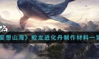 妄想山海游戏中的蛟龙进化丹,根据不同的品质制作所需要的材料也会不同,下面就让小编给大家带来《妄想山海》蛟龙进化丹制作材料一览,感兴趣的玩家一起来看看吧。 《妄想山海》蛟龙进化丹制作材料一览 千年蛟龙:虺蛇本体+莲白·闾糜角+飞雪头+千年蛟龙进化丹万年蛟龙:虺蛇本体+莲白·闾糜角+?牛头+万年蛟龙进化丹千年进化丹材料: 以上就是《妄想山海》蛟龙进化丹制作材料一览的全部内容了,更多手游攻略请关注3DM手游网!