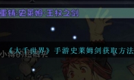 《大千世界》手游中史莱姆剑拳怎么获得呢?游戏中有很多道具物品大家找不到在哪里,部分隐藏物品道具需要经过一系列的活动才能获得!下面是3DM手游网小编给大家带来的《大千世界》手游史莱姆剑获取方法介绍,感兴趣的欢迎围观哦!>>>>小编推荐:《大千世界》礼包兑换码大全 >>>>小编推荐:《大千世界》全人物基因锁解锁方法 《大千世界》史莱姆剑获取方法更新史莱姆剑是在新手村隐藏任务中获得的。 去史莱姆图右下角NPC处花300买,流程图如下: 隐藏任务在哪领? 答:买基因员物品,杀了基因员(新手村森林右下角),再从柱子进副本拿剑,找铁匠修复。副本在哪? 答:献祭4个罐子里需要的东西,副本中央就出现了。打不过史莱姆王怎么办? 答:用物品里的史莱姆王权要是没杀研究员把他给的任务做