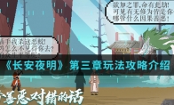 在长安夜明第二章怎么玩呢?游戏中目前有五章这是游戏中的第二章,那么这个第二章该怎么去玩呢?想知道第二章玩法攻略的就跟随小编一起来看看吧。第二章玩法攻略介绍:1、第二章,开头跟他要鼓,然后跟白到河边,选看看再说吧;2、然后回去跟村民对话,然后劝他拆桥,帮白夺剑,然后回村,劝他;3、打字是那首诗的后半段,打鼓之前先看看;4、不然只有一次机会太难了,然后劝诫成功,跑路。以上就是小编整理的长安夜明第二章通关攻略介绍,想知道更多相关资讯攻略的请关注3DM手游网。