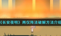 在长安夜明手游中两仪阵法怎么破解呢?这个破解方法难倒了很多的玩家,不知道该怎么去破解,那么想知道两仪阵法破解方法的就跟随小编一起来看看吧。两仪阵法破解方法介绍:正确答案是耀,耀字就可以了。游戏简介:背负天下重任实在太苦了,这一次,你将为屏幕前的自己而西行,不管你朝着怎样的方向,做怎样的选择,都会走下去,无论是否如愿。你的每一次战斗,每一次交易,都会细微的影响着这个世界,你不再是第三者,你扮演着自己,去经历大唐盛世的波澜壮阔。以上就是小编整理的长安夜明两仪阵法破解方法介绍,想知道更多相关资讯攻略的请关注3DM手游网。