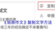 在纸条作文APP找到你想要复制的内容,进入阅读页面后,点击页面右上角的分享按钮,接着在弹出的选项中选择“复制解析”或直接“复制练笔”,即可轻松复制文字内容。如果你遇到的是比较长的纸条内容,可以先通过“存入相册”功能,把文章以图片的方式保存到手机本地。之后,再借助文字识别APP,就能轻松地把图片里的文字提取出来啦!纸条作文怎么复制?1、首先打开纸条作文app,进入软件后选择一篇自己想要复制的文章;2、进入文章详情界面后,点击右上角的三个点选项;3、点击后会弹出更多的功能选项,点击【复制文笔】选项即可将内容进行复制。以上就是小编带来的纸条作文怎么复制?纸条作文app复制文字方法,更多相关资讯教程,请关注3DM手游网。