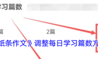 纸条作文APP调整每日学习篇数的方法非常简单。你只需打开纸条作文APP,进入学习计划页面,点击“图文计划”,然后跳转至新页面,在页面底部找到并点击“调整每日学习篇数”,接着在弹出的上滑菜单中选择你想要的篇数,最后点击确定,就能成功修改每日学习篇数啦!纸条作文怎么调整每日学习篇数?1、首先在纸条作文app上,打开学习计划——点击图文计划2、跳转页面,点击底部的调整每日学习篇数3、弹出上滑菜单,选择篇数,确定即可成功修改。以上就是小编带来的纸条作文怎么调整每日学习篇数?纸条作文调整每日学习篇数方法,更多相关资讯教程,请关注3DM手游网。