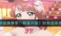 学园偶像季群星闪耀初始怎么选?在游戏内很多玩家都想知道,初始角色选择什么比较合适。接下来就让小编给大家带来《学园偶像季:群星闪耀》初始选择推荐,感兴趣的玩家一起来看看吧。 《学园偶像季:群星闪耀》初始选择推荐UR推荐:[甜蜜的夜间花车巡游]SR推荐:[幸福的午后时光]、[两人是好朋友]1、以上3个角色的技能是非常适合玩家前期的时候使用的。2、[甜蜜的夜间花车巡游]是可以帮助玩家大幅度增加特技触发概率的。3、所以[甜蜜的夜间花车巡游]无论在红、绿两队的表现都是相当不错的。 4、前期玩家选择雪菜和果南这两个角色,也是很不错的开局。5、雪菜和果南在游戏中的表现数值很大,可以提升队伍的表演能力。以上就是《学园偶像季:群星闪耀》初始选择推荐的全部内容了,更多手游攻略请关注3DM手游网!