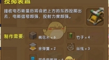 《迷你世界》投掷装置可以把物品投掷到很远的地方,大家可以用这个功能来做各种战斗武器或做成各种好玩的东西!下面就来看下迷你世界投掷装置制作及使用方法吧! 投掷装置制作使用方法 投掷装置会在0.23.0版本更新出现,制作方法如下:桃花木X6、竹子X4、金弹簧X2、丝线X3、蓝色电能线X6 投掷装置放在地上后,在上面可以放上需要投掷的物品,如下图是放了一个石头。在投掷装置旁边放一个开关,这个装置需要电石能量来驱动。电能信号越强,投射力度越强。 打开开关后,投掷装置会把上面的物品投掷出去! 看石头飞到那么远的地方了!用开关来控制投掷装置,能投出40格远的距离,而且被砸中的生物会掉血~