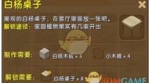 这次介绍《迷你世界》中的白杨桌子,白杨桌子非常美观的白色桌子,在客厅上放一张吧,不知道怎么合成白杨桌子的小伙伴,就来看看下面关于白杨桌子的图鉴吧。白杨桌子 【合成需要】 白杨木板*3+小木棍*4【解锁需要】 白杨桌子需要解锁进入迷你世界,点击【我的家园】。 进入我的家园后,点击左下方的【图鉴】。 在图鉴的家具一栏里面,白杨木家具下可进行解锁 解锁条件:白杨桌子碎片*8