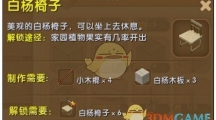 这次介绍《迷你世界》中的白杨椅子,白杨椅子还是比较好看的,不知道怎么合成白杨椅子的小伙伴,就来看看下面关于白杨椅子的图鉴吧。白杨椅子 【合成需要】 白杨木板*3+小木棍*4【解锁需要】 白杨椅子需要解锁进入迷你世界,点击【我的家园】。 进入我的家园后,点击左下方的【图鉴】。 在图鉴的家具一栏里面,白杨木家具下可进行解锁 解锁条件:白杨椅子碎片*6
