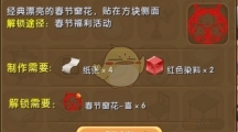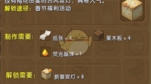 这次介绍的《迷你世界》新春宫灯的图鉴,新春宫灯淡黄的画布上带着点点红色的花枝,美到爆,不知道怎么合成获得新春宫灯,就来看看下面的解锁及合成方法吧。新春宫灯 【合成需要】 纸张X4、果木板X4、荧光晶体X1【解锁需要】 新春宫灯需要解锁进入迷你世界,点击【我的家园】。 进入我的家园后,点击左下方的【图鉴】。 在图鉴的家具一栏里面,2017春节下可进行解锁。 解锁条件:新春宫灯碎片*8。碎片可以通过春节福利活动获得或者720迷你豆解锁。