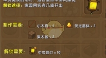 这次介绍的《迷你世界》中式宫灯的图鉴,中式宫灯是一个华贵美观的吊灯,有点像方块的灯笼,不知道怎么合成获得中式宫灯就来看看下面的解锁及合成方法吧。中式宫灯 【合成需要】 小木棍X4、荧光晶体X3、果木板X2【解锁需要】 中式宫灯需要解锁进入迷你世界,点击【我的家园】。 进入我的家园后,点击左下方的【图鉴】。 在图鉴的家具一栏里面,2017春节下可进行解锁。 解锁条件:中式宫灯碎片*10。碎片可以通过家园果实有几率开出或者900迷你豆解锁。