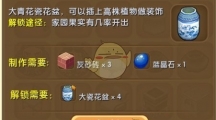 这次介绍的《迷你世界》大瓷花盆的图鉴,大瓷花盆和其他的花盆不同,大瓷花盆可以让入高株植物做装饰,不知道怎么合成获得大瓷花盆,就来看看下面的解锁及合成方法吧。大瓷花盆 【合成需要】 灰砂砖X3、蓝晶石X1【解锁需要】 大瓷花盆需要解锁。进入迷你世界,点击【我的家园】。 进入我的家园后,点击左下方的【图鉴】。 在图鉴的家具一栏里面,2017春节下可进行解锁。 解锁条件:大瓷花盆碎片*4。碎片可以通过家园果实有几率开出或者360迷你豆解锁。