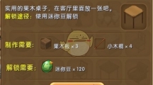 这次介绍《迷你世界》中的果木桌子,这是果木椅子配套的桌子,搭配上又实用又美观。不知道怎么合成果木桌子的小伙伴,就来看看下面关于果木桌子的图鉴吧。果木桌子 【合成需要】 小木棍X4、果木板X3【解锁需要】 果木桌子需要解锁。进入迷你世界,点击【我的家园】。 进入我的家园后,点击左下方的【图鉴】。 在图鉴的家具一栏里面,果木家具下可进行解锁 解锁条件:迷你豆X120。