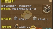 这次介绍《迷你世界》中的白色壁炉,白色壁炉非常好看,不仅美观还可以烧制东西,不知道怎么合成白色壁炉的小伙伴,就来看看下面关于白色壁炉的图鉴吧。白色壁炉 【合成需要】 岩石砖*5+白杨木板*3【解锁需要】 白色壁炉需要解锁进入迷你世界,点击【我的家园】。 进入我的家园后,点击左下方的【图鉴】。 在图鉴的家具一栏里面,白杨木家具下可进行解锁 解锁条件:白色壁炉碎片*10。