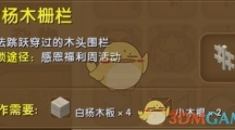《迷你世界》在这次感恩福利周活动中推出了白杨木栅栏,白杨木栅栏和白杨木围栏就是两种款式不一样,各有所爱,就来看看下面怎么样来解锁白杨木栅栏吧。白杨木栅栏 【合成需要】 白杨木板X4、小木棍X2【解锁需要】 白杨木栅栏需要解锁。进入迷你世界,点击【我的家园】。 进入我的家园后,点击左下方的【图鉴】。 在图鉴的建筑一栏里面,2017福利周(栅栏)栏下可进行解锁。 解锁条件:白杨木栅栏碎片*1。碎片可以通过参加2017感恩福利周活动获得。