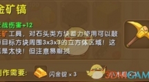 这次介绍《迷你世界》金矿镐是非常强力,对石头类方块蓄力使用可以敲掉目标方块周围3X3X3的立方体区域!想要获得金矿镐的小伙伴,就来看看金矿镐的制作材料吧。金矿镐 【合成需要】 闪金锭X3+小木棍X3