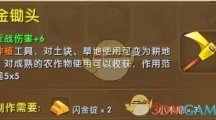 这次介绍《迷你世界》金锄头已经变成质变了,对土块、草地使用可变为耕地,对成熟的农作物使用可以收获,作用范围5X5。想要获得金锄头的小伙伴,就来看看金锄头的制作材料吧。金锄头 【合成需要】 闪金锭X2+小木棍X3