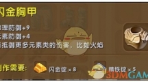 这次介绍的是《迷你世界》闪金系列中的胸甲,和能抵挡远程伤害的链甲不同闪金能抵挡元素伤害。想要获得闪金胸甲的小伙伴,就来看看闪金胸甲的制作材料吧。闪金胸甲 【合成需要】 闪金锭*8+精铁锭*5