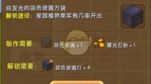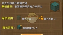 这次介绍《迷你世界》中的蓝色玻璃灯,蓝色玻璃灯是非常常见的三原色之一,和红色搭配起来显的额外好看,想要合成蓝色玻璃灯的小伙伴,就来看看蓝色玻璃灯怎么合成的吧。蓝色玻璃灯 【合成需要】 生存模式:蓝色玻璃灯=蓝色玻璃X1+曙光石粉X1创造模式:可在杂物栏内获得【解锁需要】 蓝色玻璃灯需要先解锁,才能开启合成制作。进入迷你世界,点击【我的家园】。 进入我的家园后,点击左下方的【图鉴】。 在图鉴里面找到家具一栏,就能找到蓝色玻璃灯 蓝色玻璃灯解锁条件:蓝色玻璃灯碎片*4。蓝色玻璃灯碎片可以通过家园植物果实有几率出。或者消耗360迷你豆解锁。蓝色玻璃灯碎片可以通过家园植物果实有几率出。可以在创造/玩法模式使用。