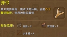 这次介绍《迷你世界》中的弹弓,虽然伤害上相比其他的远程武器差了不少,不过蓄气快的优点和弹药只需要有石子就可以让当成弹药来使用也让弹弓变成了非常实用的武器。弹弓 【合成需要】丝线X2、软皮革X1、小木棍X3【解锁需求】迷你豆X60