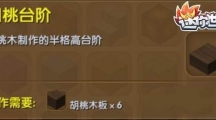 这次带来的《迷你世界》中的胡桃台阶,在颜色上就是基本就是巧克力的黑色了,可能小编属于吃货吧,胡桃台阶意外的有食欲,不太喜欢放这个。胡桃台阶 【合成需要】生存模式:胡桃木板X6。创造模式:可在物品栏的方块中找到。