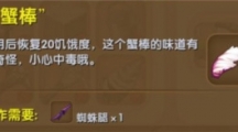 《迷你世界》中蟹棒是一个非海鲜的食材哦。就算海鲜过敏也完全可以食用,就是要小心中毒。小伙伴想在《迷你世界》中吃上蟹棒大餐的话,这里就来看看小编带来的蟹棒合成表图鉴吧。蟹棒 【合成需要】蜘蛛腿*1(打败大眼蛛有几率获得)