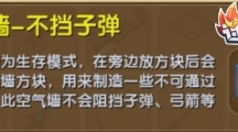 《迷你世界》的空气墙-不挡子弹,可以在放下后就转为生存模式,在旁边放方块后就会隐藏空气墙方块,用来制造一些不可通过的区域。不过不能挡住子弹或者弓箭这样的投掷物。空气墙-不挡子弹 【合成需要】生存模式无法合成获得,创造模式可在物品栏内使用