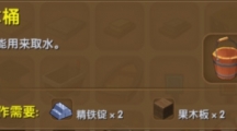 这次介绍《迷你世界》的木桶,相信一看名字大家就是能顾名思义的想到木桶是干嘛的——没错,就是取水,在种农作物的小伙伴用木桶来取水是非常方便快捷的,下面就来看看木桶是用什么合成的吧。木桶 【合成需要】精铁锭*2、果木板*2