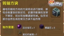 《迷你世界》的转轴方块,这一句称得上有工业制造的高科技产品了。通电之后就可以向方法的方块进行旋转,在很多地方可以做出非常有趣的建筑和设计。转轴方块 【合成需要】远古宝石X1、黑晶石X5、推拉机械臂X1