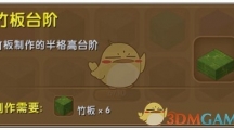 这次介绍《迷你世界》中的竹板台阶,是用竹子做的台阶,也是非常不错的一种台阶,相信会有小伙伴会用的。还有下面就来看看关于竹板台阶的介绍吧。竹板台阶 【合成方法】 竹板*6【描述】 竹板制作的半格高台阶。