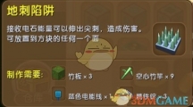 《迷你世界》地刺陷阱完全是一个强力的陷阱,只要藏的好就可以各种阴了,想要地刺陷阱小伙伴。下面就来看下迷你世界地刺陷阱制作及使用方法吧!地刺陷阱制作使用方法 地刺陷阱会在0.23.0版本更新出现,制作方法如下:竹板X3、空心竹竿X9、蓝色电能线X1、精铁锭X3 地刺陷阱是需要电石能量控制的,大家可以用开关、电能石等来控制陷阱上面的刺伸出来缩回去!