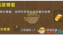 这次介绍《迷你世界》中的瓶装蜂蜜,瓶装蜂蜜是用蜂蜜铁桶加上小玻璃瓶合成出来的道具,看上去好吃也可以回血。下面就来看看关于瓶装蜂蜜的介绍吧。瓶装蜂蜜 【合成方法】 小玻璃瓶*3+蜂蜜铁桶*1【描述】 甜甜的蜂蜜,食用后可获得生命恢复的效果。