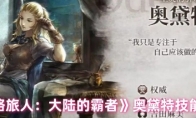 歧路旅人大陆的霸者奥黛特技能强度怎么样,赛拉斯的学姐奥黛特,风光2种打击面让她成为了赛拉斯火冰雷打击面的很好补完。个人特色当然就是被动技能“偶尔连续咏唱”,触发后会释放2次所使用的属性技能。《歧路旅人:大陆的霸者》奥黛特角色优劣势解析:一、角色信息奥黛特基本信息角色名称:奥黛特职业:学者突破弱点:书、风、光影响力:权威初始星级:五星二、基础面板三、技能介绍被动技能技能名称:偶尔连续咏唱技能效果:自身使用属性技能时,有50%的概率发动2次(无额外SP消耗)主动技能1、技能名称:光明魔法(单体)4技能效果:对敌方单体施以光属性攻击(威力260)消耗精力:34(强化后)BP加成效果:Max威力4502、技能名称:风尘魔法(单体)4技能效果:对敌方单体施以风属性攻击(威力260)消耗精力:34(强化后)BP加成效果:M