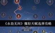 永劫无间魏轻天赋怎么选?这个角色玩的人还是比较少的,所以对于它的天赋选择有很多玩家都不是很了解,那么小编接下来就将永劫无间手游魏轻天赋的搭配攻略分享在下方,有需要的可以来看看。《永劫无间》魏轻天赋选择攻略1、红色天赋我们可以选择伤转怒,这个角色的奥义技能很关键,伤转怒能够快速的提升下这个角色的玄武盾的获取速度,就算我们的回复不够了的情况下也是可以很好的稳住的。2、绿色天赋我们可以选择精力回复,提供的冷却降低那么就可以让这个角色更快地释放技能来控制对手,搭配起来也是更加的适合了,大家要是喜欢玩这个角色的话那么就可以往这个方面去搭配了,能够提升下实力的。以上就是3DM小编整理带来的永劫无间魏轻天赋选择攻略,更多相关游戏攻略,请关注3DM手游网!