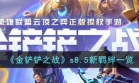 《金铲铲之战》是英雄联盟云顶之弈正版授权的自动战斗品类手游,每局比赛由八名玩家共同进行一场各自为战的博弈对抗,玩家通过招兵买马,融合英雄,提升战力,排兵布阵,成为最终立于战场上的赢家。金铲铲之战即将更新s8.5赛季,一大批新棋子新羁绊来袭,各位小伙伴们赶快跟进小编的步伐来先预览一下新赛季的棋子和羁绊吧,本期小编为大家带来的是金铲铲之战s8.5新棋子纳尔技能及英雄强化,感兴趣的小伙伴们快来一起看看吧。《金铲铲之战》s8.5纳尔技能及英雄强化纳尔个人属性:费用:三费技能:纳尔对一个方向上的敌人造成伤害,他当前的攻击目标受到额外伤害。这个伤害的数额相当于纳尔10%总攻击力,但不低于纳尔170%的额外攻击力。羁绊:小天才、淘气包英雄强化:个人强化:同步镀层提供一个【纳尔】。他获得15双抗,此外每对1名敌人造成伤害,就会