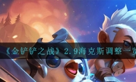 金铲铲之战在今天正式更新了2.9版本,很多小伙伴都很想知道本次版本更新对海克斯进行了什么调整,今天小编给大家带来了《金铲铲之战》2.9海克斯调整一览。感兴趣的小伙伴一起来看看吧。《金铲铲之战》2.9海克斯调整一览代谢增速器:你的小小英雄移动的更快,每个阶段开始时回复2生命值。现在仅出现在1-4回合。电火花 III:当你的弈子受到暴击时,对周围1格的敌人造成一定的魔法伤害(基于阶段数提升,在阶段5达到最大值)。伤害: 105/135/165/200 ⇒ 115/145/180/220源计划植入:你的英雄只要携带了1件装备,就会获得一定生命值和攻击力。生命值: 150/250/350 ⇒ 125/200/300源计划甲壳:你的弈子只要携带了1件装备,就会获得一定生命值和护甲。生命值: 150/250/350 ⇒ 1
