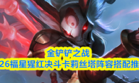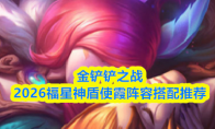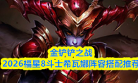 金铲铲之战2026福星战神劫阵容以天选战神劫为核心,装备双羊刀与夜刃,搭配6战神与4明昼羁绊,攻速与吸血能力极强。前期直接用战神与明昼体系牌过渡,在6级时大D找到天选战神劫并追出三星,随后卡利息升人口,逐步补充奥拉夫、德莱文等其他战神卡提升整体战力。所有运营与站位都围绕让劫打出最大输出,成型后强度可观。 金铲铲之战2026福星战神劫阵容搭配推荐一、阵容组成 劫、格温、派克、德莱文、奥拉夫、提莫、猫咪、黛安娜、诺手、千珏 二、羁绊组成 6战神、4明昼、2刺客 三、天选 劫(战神) 四、强化符文 海克斯强化方面优先考虑战神的专属海克斯;或者是天选之人强化的海克斯;其他战力类,包括D牌类都可以选择。 五、核心装备推荐 1、劫:夜刃、羊刀、羊刀2、格温:偷偷3、派克:偷偷4、德莱文:羊刀、无尽、轻语5、奥拉夫:泰坦、饮