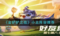 在金铲铲之战游戏中,小丑是一个刺客英雄,搭配上暴击装备伤害非常的高。相信很多玩家都想知道小丑如何搭配阵容。下面小编给大家带来《金铲铲之战》小丑阵容推荐,感兴趣的小伙伴们一起来看看吧。 《金铲铲之战》小丑阵容推荐阵容推荐1、阵容成员:小丑+布隆+阿卡丽+艾克+卡特琳娜+婕拉+诺手+风女2、羁绊:5辛迪加、4刺客、2极客、2保镖、2学者 3、装备:无尽之刃+鬼索的狂暴之刃+正义天使4、海克斯:优选:辛迪加之心+烟幕弹+刺客之魂次选:日炎棋盘+偏门生意+短兵之利Ⅲ 以上就是《金铲铲之战》小丑阵容推荐的全部内容了,更多手游攻略请关注3DM手游网!