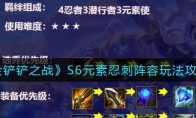 《金铲铲之战》游戏中S6元素忍刺阵容由4忍者3潜行者3元素使组成,那么今天小编就给大家介绍一下金铲铲之战S6元素忍刺阵容玩法攻略,有需要的小伙伴不要错过了。 《金铲铲之战》S6元素忍刺阵容玩法攻略阵容组成:4忍者3潜行者3元素使 阵容核心装备: 主C阿卡丽:火炮无尽必备,第三件可以蓝BUFF,正义之手,科技枪,复活甲,饮血都可以,最好的话就是蓝BUFF或者正义。派克:冰心必备,冰心派克谁用谁知道,其次最好有个鬼书减疗。凯南:鸟盾必备,有条件的话可以给他个刺转,飞雷神的强大你就能体会得到。慎:反甲龙牙狂徒离子火花救赎这些肉装都可以给他。剩下的法强装给火男或者劫即可。 核心运营节奏: 阵容的核心在于稳血速7+火炮无尽,让你有足够的血量跟经济在7级慢D,三星越多就越强,但是特别是分段高了之后,开局没攻速的
