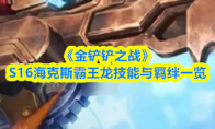 金铲铲之战S16新赛季现已开启,众多全新棋子携独特技能与羁绊加入战局。熟悉各弈子效果是构筑强势阵容的关键,下面是《金铲铲之战》S16最新棋子大全,助你快速掌握版本答案。 《金铲铲之战》S16最新棋子大全《金铲铲之战》S16最新棋子大全 1费 奇亚娜 克格莫 兰博 佛耶戈 皇子嘉文四世 贝蕾亚 冰鸟艾尼维亚 机器人布里茨 烬 琴女娑娜 凯特琳 璐璐 慎 2费 妮蔻 艾克 小炮崔丝塔娜 发条奥莉安娜 大虫子科加斯 蛮王泰达米尔 波比 赛恩 厄斐琉斯 亚索 男枪格雷福斯 蔚 赵信 约里克 提莫 艾希 崔斯特 巴德 挖掘机雷克塞 3费 洛里斯 船长普朗克 阿狸 米利欧 乐芙兰 猪妹瑟庄妮 金克丝 薇恩 佐伊 凯南 蒙多医生 格温 泰坦诺提勒斯 德莱文 蕾欧娜 德莱厄斯 蚂蚱玛尔扎哈 可酷伯&悠米 4费 辛吉德