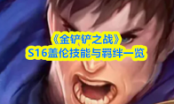 金铲铲之战S16五费卡【加里奥】技能与羁绊分享来了。作为正义巨像/德玛西亚棋子,其技能“鼓舞之力”可群体护盾并造成范围魔法伤害,被动每三次攻击生成额外伤害区域。需登场总等级12星的德玛西亚棋子解锁,是攻防一体的顶级前排核心。 《金铲铲之战》S16加里奥技能与羁绊一览一、技能 【鼓舞之力】被动:每第三次攻击在目标周围生成一个圆形区域,造成魔法伤害。主动:冲向最大的单位群体,激励其范围内的所有盟友,为它们提供护盾,持续4秒。然后发动冲击,对2个单位区域内的所有敌人造成额外魔法伤害。二、棋子介绍 1、费用:5费卡2、羁绊:正义巨像、德玛西亚3、解锁条件:登场总等级12星的德玛西亚棋子《金铲铲之战》S16最新棋子大全 1费 奇亚娜 克格莫 兰博 佛耶戈 皇子嘉文四世 贝蕾亚 冰鸟艾尼维亚 机器人布里茨 烬 琴女娑娜