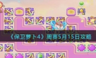 保卫萝卜4是一款国民休闲塔防游戏,我们可以每天参与周赛关卡,5月15日的周赛关卡怎么过?进游戏之后直接暂停,然后建立两个船锚锁定桌子,桌子拆掉之后再建一个船锚。下面是具体的操作方法,还不清楚《保卫萝卜4》周赛5月15日攻略的小伙伴们一起来看看吧。>>>>>《保卫萝卜4》周赛攻略大全2023年5月 《保卫萝卜4》周赛5月15日攻略1、进游戏之后直接暂停,然后建立两个船锚锁定桌子,桌子拆掉之后再建一个船锚。2、解决完前面的三只兔子后再去锁定右下角的桌子,然后再建船锚锁定右边的钱袋。3、今天还是简单的,全程锁着神仙打90分是非常容易的,但是为了明天的分数高,后期可以不用全程锁。4、最终布局看下面图片,大家可以参考放置。 大神视频可以参考:https://www.bilibili.com