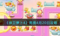 保卫萝卜4是一款国民休闲塔防游戏,我们可以每天参与周赛关卡,4月20日的周赛关卡怎么过?进游戏后直接暂停建立一个三级太阳花,放在左边锁定花篮。接着在如意的位置也放一个太阳,升到二级,这个太阳一定要放的早,要是手速跟不上要暂停建塔。还不清楚《保卫萝卜4》周赛4月20日攻略的小伙伴们一起来看看吧。