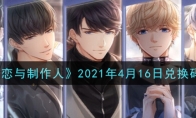 《恋与制作人》游戏中经常有各种小礼包发放,包含一些钻石、暴走卡等,2021年4月19日兑换码是什么?又在哪里领取呢?下面就是3DM小编给大家带来的《恋与制作人》2021年4月19日兑换码分享了,想要领取福利的速来围观吧!>>>>小编推荐:《恋与制作人》礼包兑换码大全2021 《恋与制作人》2021年4月19日兑换码兑换码:nAJdf7jK5Ywr 内含:30钻 5牵绊心愿 10暴走卡 CDK礼包激活码怎么领游戏内点击左上角头像,在弹出界面中点击【兑换码】按钮,即可输入兑换码领取奖励。奖励直接到账,不通过邮箱发送,玩家们无需花费时间等待!以上就是3DM小编带来的《恋与制作人》2021年4月19日兑换码领取介绍,更多精彩内容,请点击关注3DM手游网,小编将持续为您更新!