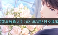 《恋与制作人》游戏中经常有各种小礼包发放,包含一些钻石、暴走卡等,2021年3月23日兑换码是什么?又在哪里领取呢?下面就是3DM小编给大家带来的《恋与制作人》2021年3月23日兑换码分享了,想要领取福利的速来围观吧!>>>>小编推荐:《恋与制作人》礼包兑换码大全2021 《恋与制作人》2021年3月23日兑换码兑换码:nAFanw5J2vay 内含:牵绊心愿 CDK礼包激活码怎么领游戏内点击左上角头像,在弹出界面中点击【兑换码】按钮,即可输入兑换码领取奖励。奖励直接到账,不通过邮箱发送,玩家们无需花费时间等待!以上就是3DM小编带来的《恋与制作人》2021年3月23日兑换码领取介绍,更多精彩内容,请点击关注3DM手游网,小编将持续为您更新!