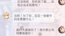恋与制作人游戏中有着周棋洛这一角色,春运已至,周棋洛也遇到了春运问题,游戏中周棋洛可能会给玩家发送一条有关春运的短信,怎样回复周棋洛呢?下面就和3DM小编一起来看下吧! 短信主题: 周棋洛春运车票短信内容欣赏: 周棋洛:薯片小姐!刚看到你那条十万火急求车票的朋友圈!买到了吗?需要我帮忙吗?我:还没有呢,愁死我了都……你有办法买到票吗?周棋洛:当然!为了你,区区一张春节的车票算什么!我:真的太谢谢你了!我代表公司同事感谢你!周棋洛:……原来不是你要买车票啊。周棋洛:我傻了,你是本地人也不用买车票的。周棋洛:不管啦,既然我帮了你这个忙,那你打算怎么感谢我?我:嗯……你说吧,想我怎么感谢你?只要能做到。周棋洛:我要的谢礼很简单,能见到你开心的样子就够了。周棋洛:你现在是在公司对吗?如果有空的话就下楼一趟吧,我等你。