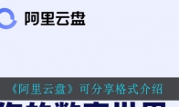 阿里在之前公测了阿里云盘,但阿里云盘的分享功能还在内测,很多小伙伴都很想知道阿里云盘都支持什么格式的文件,今天小编给大家带来了《阿里云盘》可分享格式介绍,感兴趣的小伙伴一起来看看吧。《阿里云盘》可分享格式介绍1、图片支持以下格式PNG、JPG、JPEG、BMP、GIF、 WEBP2、视频文件支持以下格式AVI FLV、MP4、MPG、ASF、 WMV、MOV、WMA、RMVB、RM、FLASH、 TS3、 音频文件支持以下格式MP3、WAV、AAC、 WMA、OGG、M4A、AMR、AUDIO、 M3U84、 文档\文本文件支持以下格式PDF、WORD、 TXT、PPT、EXCEL、 OUTLOOK、 VISIO、 RTF未来会支持更丰富的格式,以及压缩包的分享(ZIP、TAR) 。以上就是小编整理的关于《阿里
