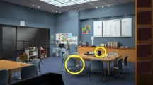 终于来到一个像是办公室的地方了,但是这桌子上的国际象棋又是怎么回事,真是个奇怪的地方。不管了,还是快点逃脱吧,白板上的文字应该是密码,可是要怎么使用呢?第7关攻略 1、进到第七关后先在下图指示位置的两个地方取回一个开关与弹簧,然后组合起来。 2、再把组合好的物品装在下图指示位置的书中。 3、在上面的墙上会发现有上下的提示。 4、按照上图的提示调整下图的书本(如下图),然后取回物品。 5、把蓝色骰子放在下图位置,然后按照中间的颜色与顺序提示可以算出4526的数字。 6、然后点击右边椅子上的球,输入密码4526取回物品。 7、再把刚刚获得的物品插在地球仪上面,然后调整地球仪。 8、把地球仪调整好后取回里面的物品。 9、再切换到桌子上下图位置,把插头插上。 10、然后可以得出6274的数字。 11、再点击左边的书架子