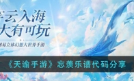 在天谕手游中玩家可以把自己喜欢的歌写进乐谱,在这里小编给大家分享一下君不见这首歌的乐谱代码,喜欢的小伙伴不要错过哦,下面小编给大家带来《天谕手游》君不见乐谱代码分享,不清楚代码的小伙伴赶紧来看看吧。>>《天谕手游》乐谱代码汇总 《天谕手游》君不见乐谱代码分享At70v15r2l8rv12ev10gav13bev10gf+4v12f+v10gav13agv10f+e4v12ev10gbv13bev10gf+v12gav10b+av13b2.v10b>dv13edv10d.v10dv13e2&ev12ev10gav13bev10gf+4v12f+v10gav13agv10f+e4v12ev10gbv13be16gv10b.v12ab16>d.v10ev13dv13ed16ev10dv