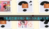 《直男恋爱攻略》是一款Q版卡通益智解谜小游戏,玩家需要帮助游戏主角完成在追求女孩道路上的层层关卡、谈一场脑洞大开的沙雕恋爱。那么游戏第四章第5关怎么过呢?一起来看看《直男恋爱攻略》第4-5关通关攻略吧!>>>>《直男恋爱攻略》全关卡通关攻略大全《直男恋爱攻略》第4-5关通关攻略1、拿到桌子上面的麦克风给男主角2、点击后方的屏幕开始点歌,将音乐切换至小情歌3、接着点击开始播放伴奏,最后切换至原唱即可顺利过关游戏介绍:1、神秘流浪汉拦住你:我这里有本秘籍……《直男恋爱攻略》,带上它,去邂逅你的命中注定吧!2、直男恋爱,不一定只会说”多喝热水“,还有很多你想不到的直男语录。3、有隐藏的相册和彩蛋等你收集,查看第一章通关的剧情,照片记录你们恋爱的过程。4、在追求女孩的道路上完成层层关卡,告白、告