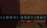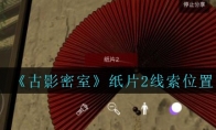 《古影密室》在孙美琪之谜系列独立作品中,侦探们需要解决的是密室问题,不过需要先找各种线索!那么游戏中【纸片2】在哪里呢?下面是3DM手游网小编给大家带来的《古影密室》纸片2线索位置介绍,不知道位置的小伙伴一起看看吧!>>>>小编推荐:《古影密室》攻略线索大全>>>>小编推荐:《孙美琪疑案》系列游戏下载攻略汇总《古影密室》纸片2线索位置介绍位置:如图扇子上可以找到线索。线索详情:一张纸片,上面有一个字:快。【游戏剧情】李可听朋友推荐了一家真人密室逃脱馆,闲来无事就预约去玩玩。这家场馆支持单人密室,他选择了带点儿古风的主题。限时60分钟,游戏开始!>>>>小编推荐:《孙美琪疑案》系列攻略顺序合集以上就是3DM小编整理带来的《古影密室》纸片2线索