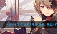 《崩坏学园2》中的使魔「缇娅&露娅」非常强力,但需要合理的搭配来配合,有的小伙伴不了解他的强度与优势在哪里,具体内容就来看看下面分析吧。 《崩坏学园2》使魔「缇娅&露娅」强度分析 奥义:原初之裁决禁锢所有敌人5秒,对所有敌人造成50%(100%)攻击力物理和能量伤害各8次,并使其陷入脆弱状态,受到伤害提升75%(150%),持续15秒奥义在施展完禁锢之阵后对敌人附加脆弱状态并开始在场上穿梭造成伤害;奥义附加的脆弱数值为当前使魔中排名第二,由于施加延迟的特性需要把握释放时机。 自律:罪恶剪除禁锢敌人5秒,对敌人造成100%(200%)攻击力的物理和能量伤害,并使其陷入魅惑状态,攻击力下降40%(80%),持续5秒开场缇娅会选择将露娅丢出去,两者就会分开跟随角色,但是两者会非常默契的攻击同一目标。
